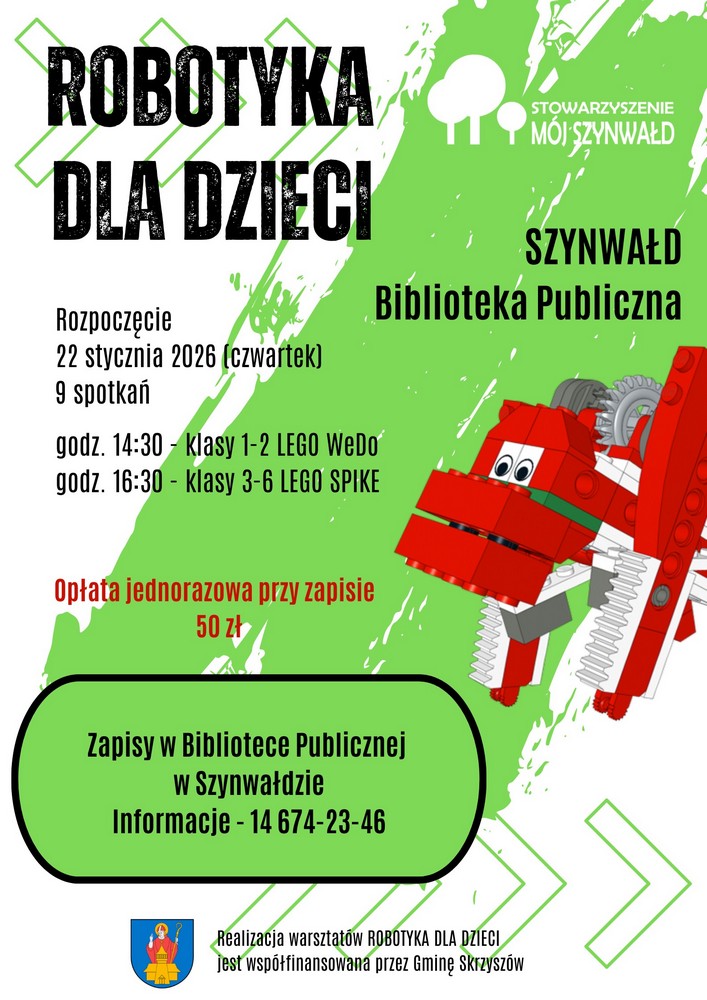 Zapisy przyjmowane będą tylko na miejscu w Bibliotece Publicznej w Szynwałdzie, po dokonaniu jednorazowej opłaty – 50 zł (gotówka), w godzinach pracy biblioteki.